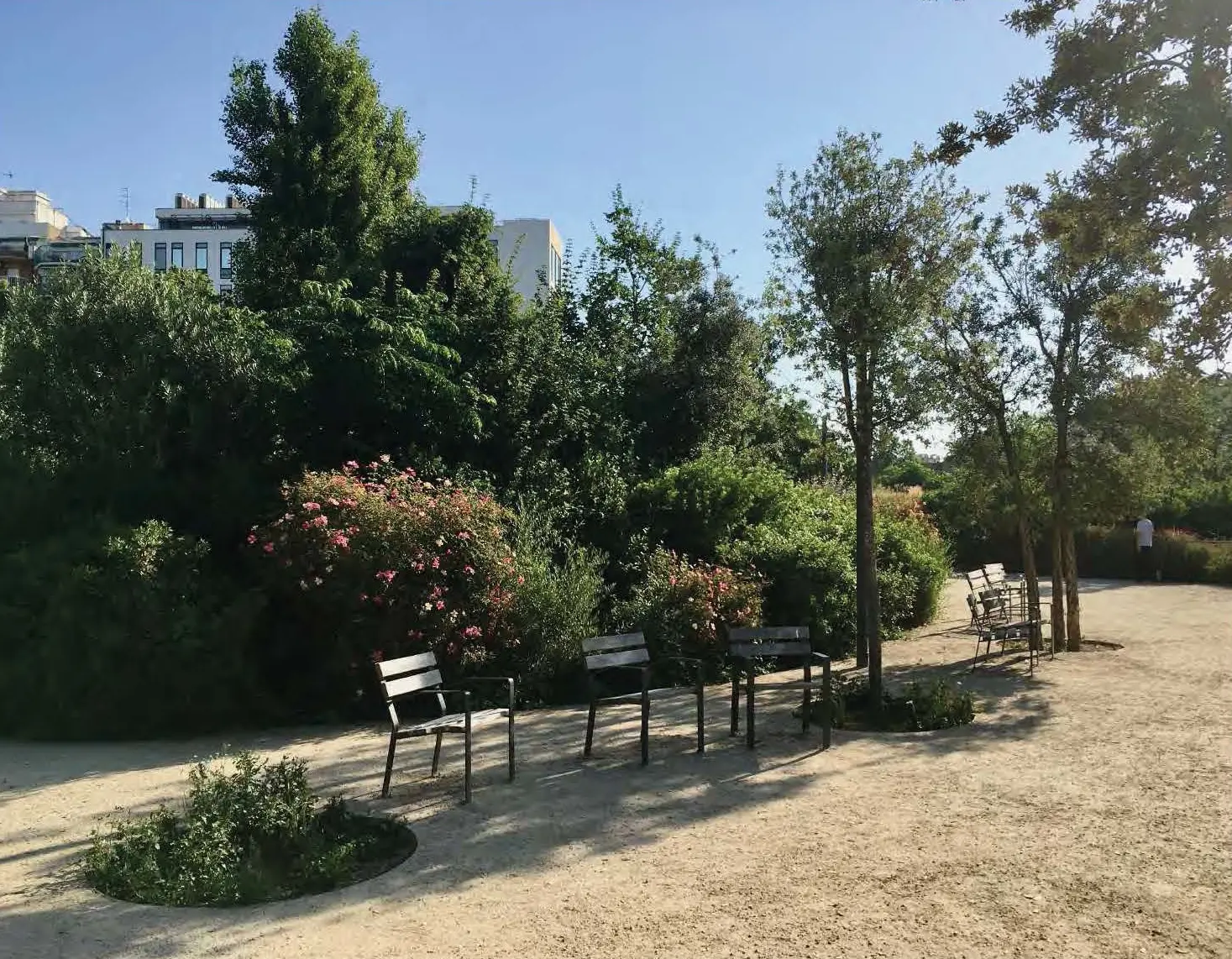 Són espais vegetals que restableixen els intercanvis naturals entre el cel i el subsol, permeabilitzant el sòl i restablint el cicle natural de l’aigua, convertint el parc en un poderós regulador climàtic de la ciutat, i augmentant la resiliència de l’espai urbà’ enfront del canvi climàtic.